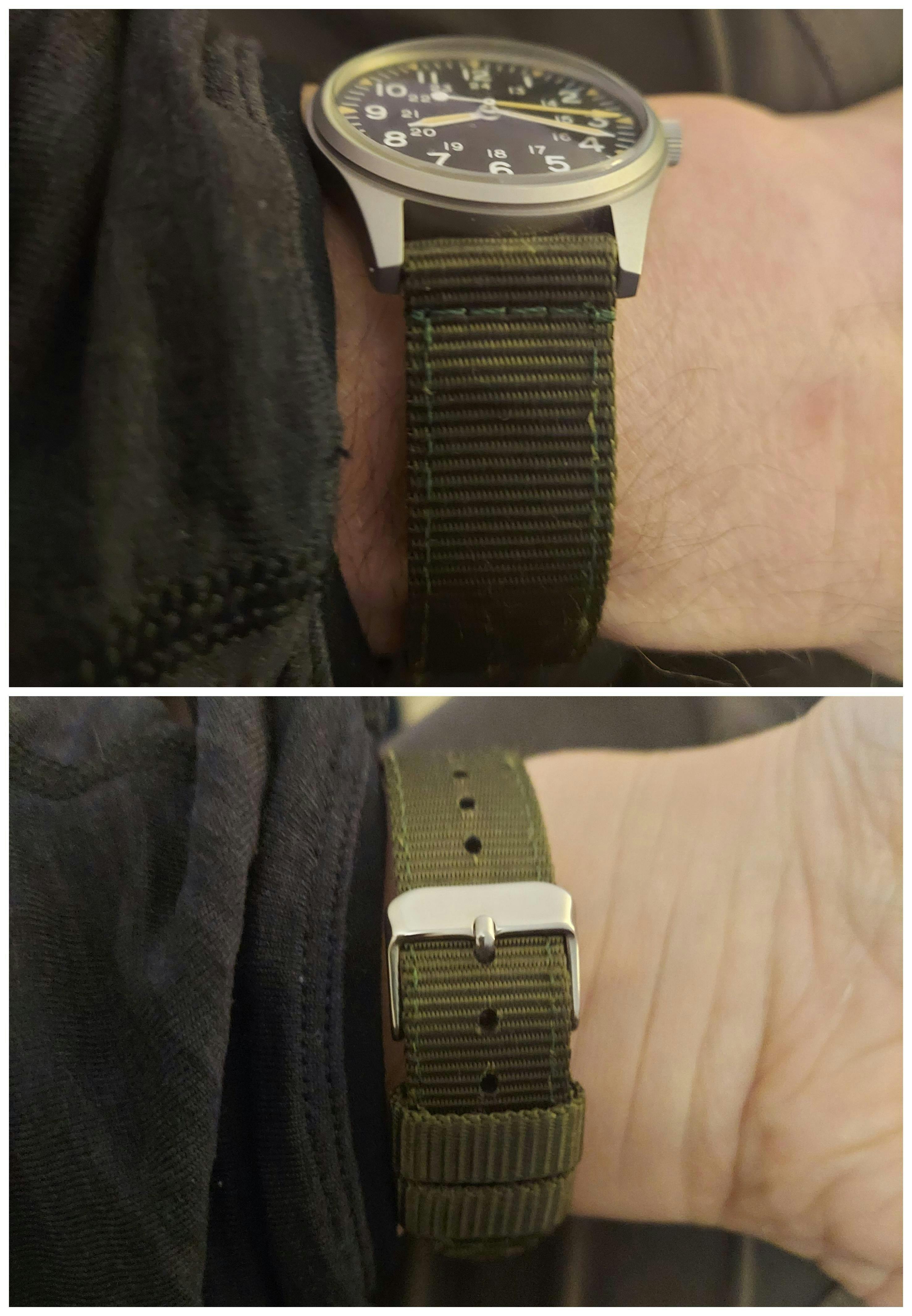 Thankful to find a NATO 2 piece strap with quick release pins since I like to change the looks of watches with strap changes. Got 3 of these in this color, red and red and white stripe. The quality of the material and the construction is outstanding. Makes the watch look great. Best NATO strap I’ve owned.